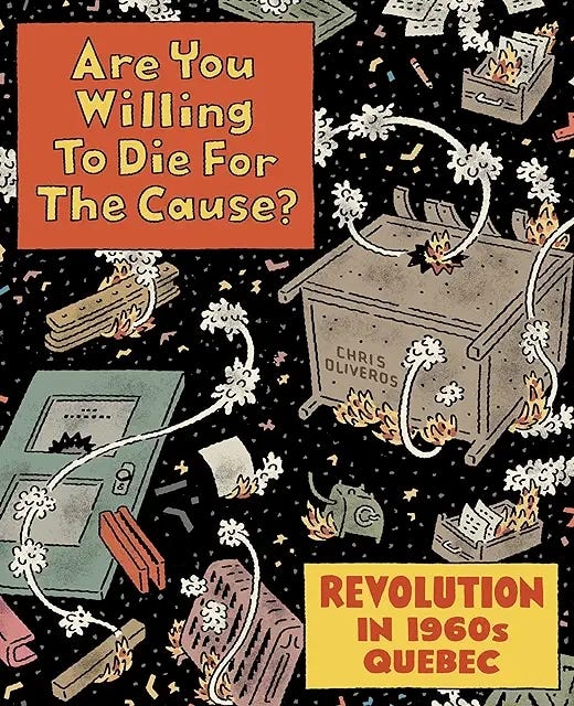 Are You Willing to Die for the Cause? by Chris Oliveros is very exciting. It is a graphic novel about the beginnings of the FLQ in Québec in the ’60s. The art’s great, the cartooning and the history is fascinating. I’m not usually so keen on graphic books but this one is well worth reading. I downloaded it on my iphone and e-reader, but I’d recommend getting the book from the library (or buying it) because the pictures (in full colour!!) are tiny on your phone. Delightful. Not sure I agree with the rather centrist political view the author seems to hold – but it’s really a unique way of seeing history of Québec and something from a past many of us shared in spirit– if not in actuality.