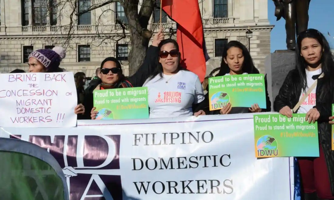 The Guardian Long Read ‘They treated me like an animal’: how Filipino domestic workers become trapped is well worth listening to. It told me a lot I didn’t know. For example, the Philippines nets more than $31 billion annually in remittances from domestic workers who send money back to their families. Seventy percent of domestic workers have to share their rooms with the rich families’ children, or sleep on the floor. About 50% of domestic workers don’t have enough food to each, live from scraps from the table, and are often not paid their wages. Saudi Arabia, Kuwait, and Hong Kong are major countries where Philippinas go to work as domestics.